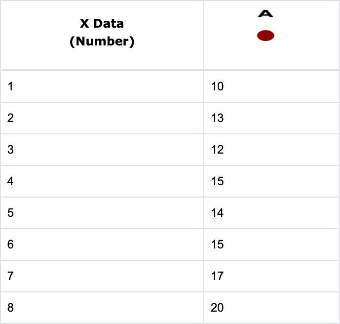 button and choose X Data Type: “Number” and Graph Type: “Scatter”. - Enter the following data into the Data Table: